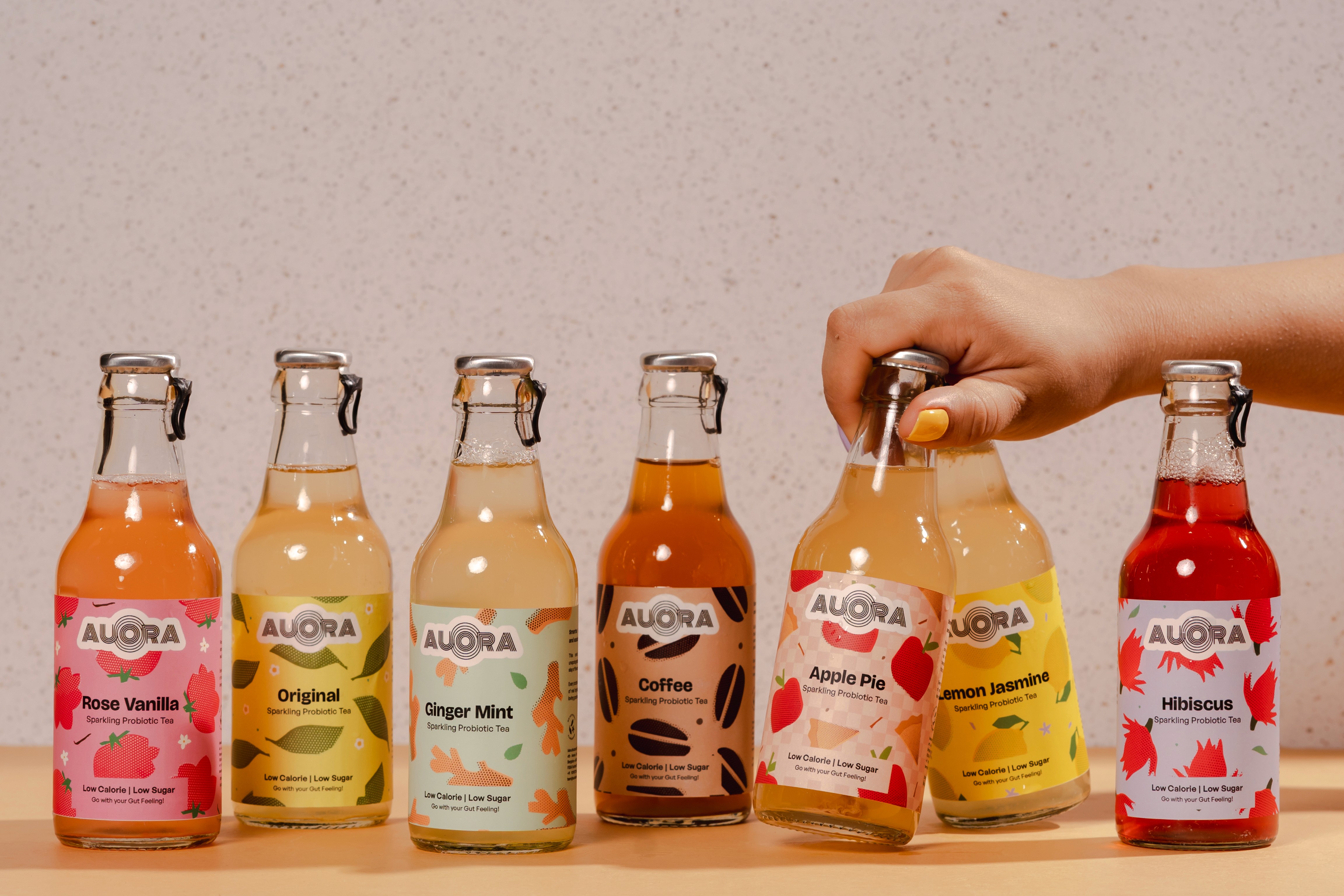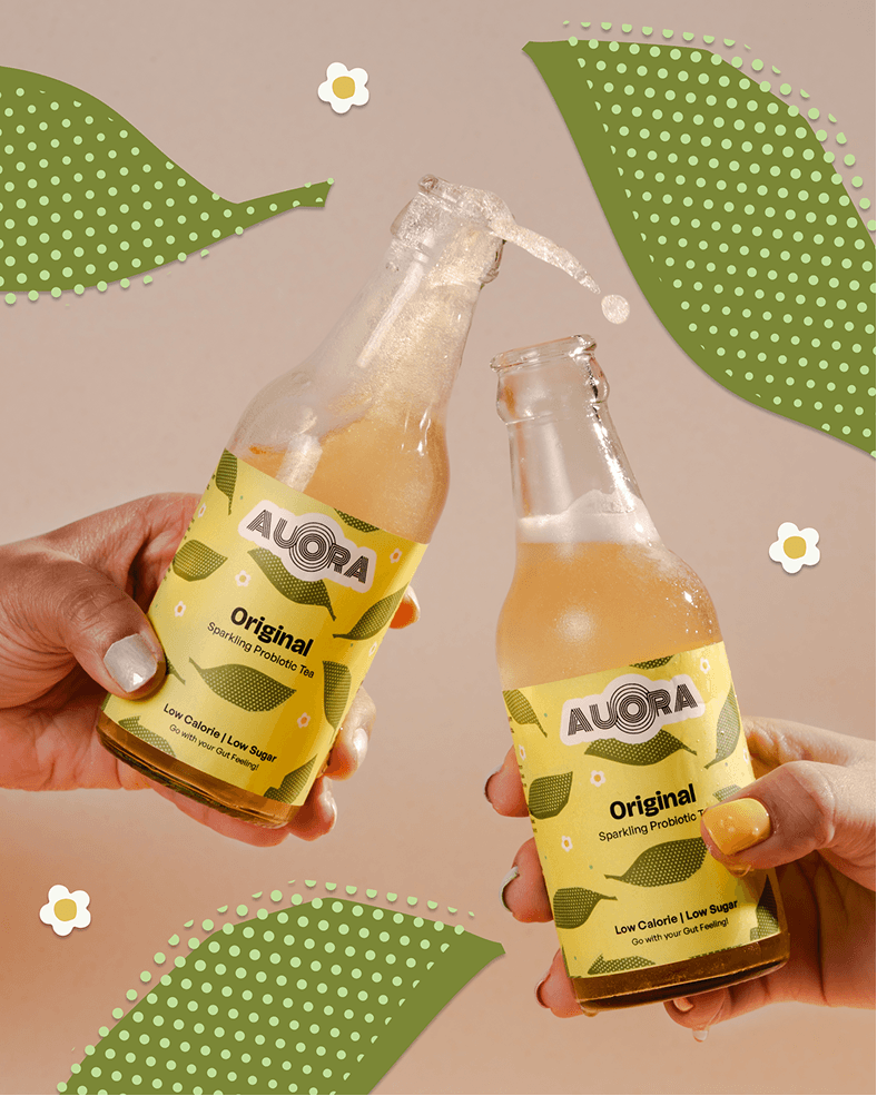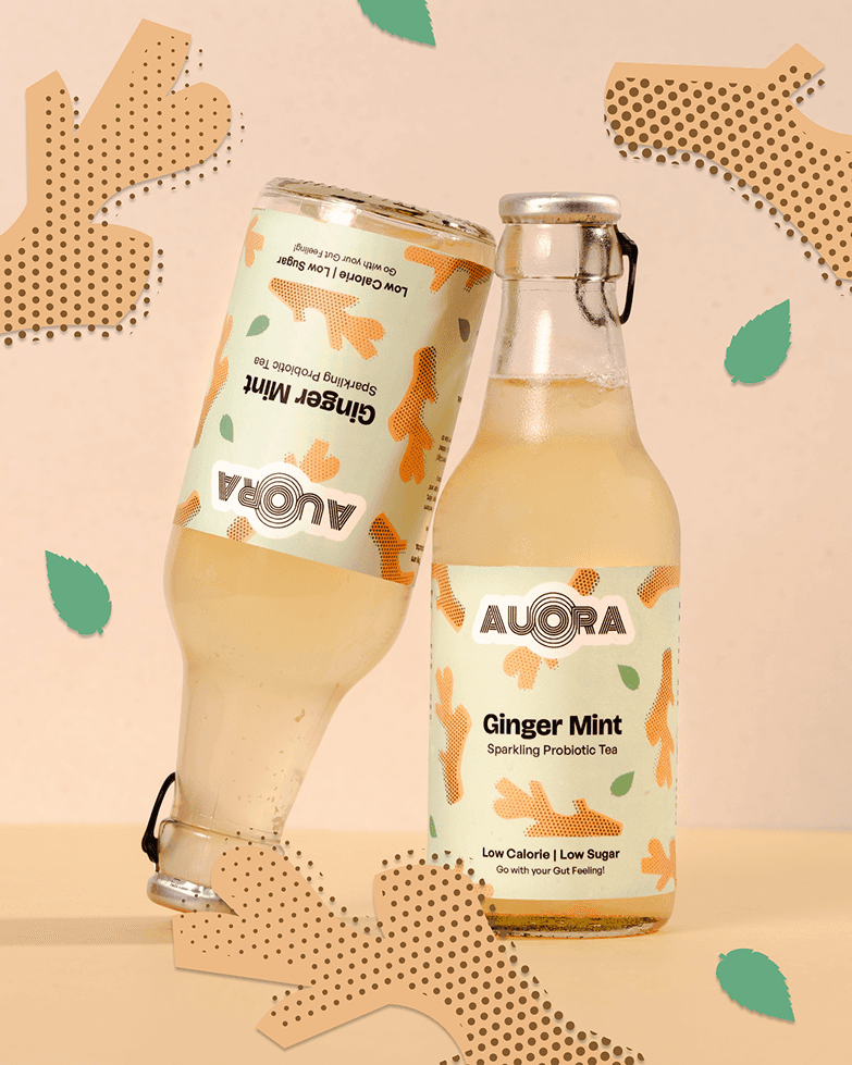 Aurora came to us mid-growth. The original identity read too earnest, too health-functional in a category that was starting to have real fun with itself. They needed a visual language as alive as what's inside the bottle, and our identity for Aurora is as bubbly as its kombucha. The fruits and their abstractness have a lot of personality and we pushed them into shapes that feel familiar before they're fully decoded, forms with motion, with life.